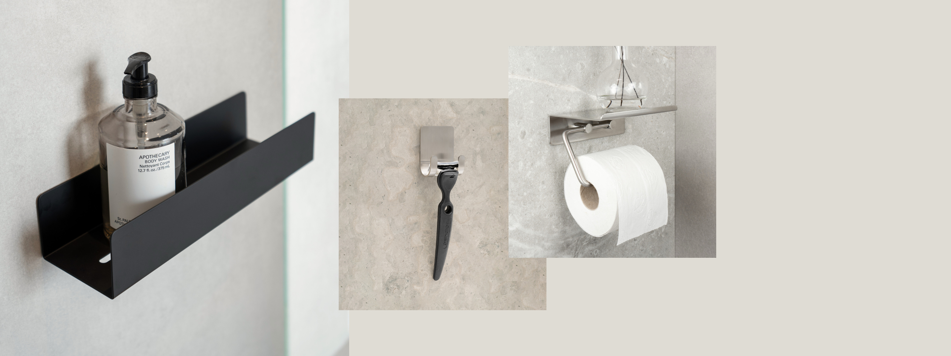 Transform your bathroom with functional accessories like a wall-mounted razor hanger or a toilet paper holder featuring a convenient phone-sized top shelf. These self-adhesive designs are both practical and beautiful, requiring no toolbox for installation. Available in various finishes to complement your home decor and personal style.